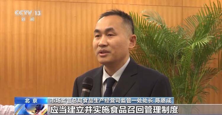 市场监管总局食物出产运营司监管一处处长 陈恩成:明白要求食物出产运营者成立并实施食物召回办理轨制,食物运营者、集中买卖市场创办者、柜台出租者、展销会举办者及收集平台供给者的共同召回权利。