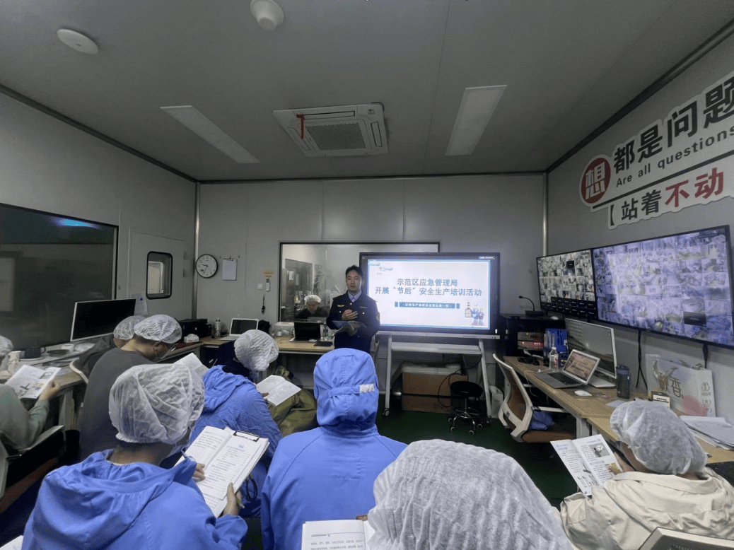 培训中,局宣讲员针对员工返岗后遍及存正在的思惟懒惰、岗亭操做熟练度下降等凸起问题,从“设备平安、应急措置”三个方面展开详尽,还连系食物企业出产场景,细化原料加工、成品存储等环节的岗亭平安规范,强调企业要全面开展现患排查,及时消弭各类平安现患,实行闭环办理。同时,要严酷施行“培训及格再上岗”轨制,对未返岗、新上岗及转岗人员进行系统培训,为强化培训结果,局宣讲员组织全体参训人员集中旁不雅近期典型平安出产变乱警示教育片,曲不雅展示轻忽平安细节、违规操做的严沉风险,让正在场员工深刻感遭到平安出产无小事,进一步建牢全员平安思惟防地。