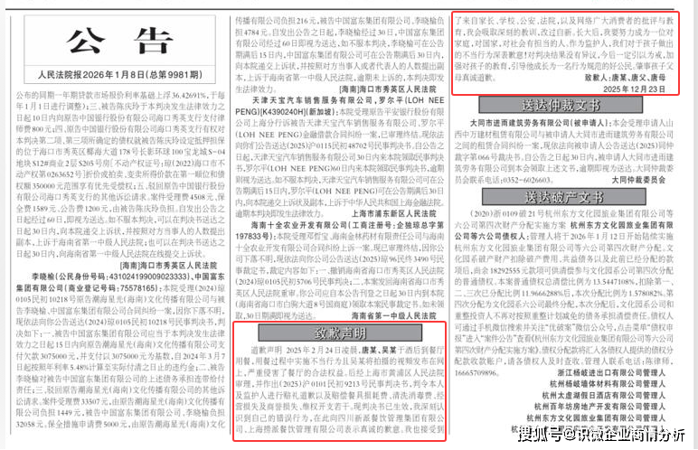 2026年1月1日,涉事家长将拍摄的视频剪辑后发布至抖音平台,本来企图“记实温暖时辰”赔取点赞,却很快激发网友反感,家长因压力删除视频。2026年1月8日,东方财经、新黄河等报道“海底捞被扔尿布事务”,相关线日,海底捞客服及涉事门店先后向回应:确认事务发生于2025年12月31日徐州云龙万达广场店,涉事行为为两岁小童将尿不湿扔至该桌锅具内;门店发觉后第一时间采纳应急办法,确保未影响其他就餐顾客;门店已第一时间报警,属地警方已依法对当日正在场监护人做出响应处置;目前涉事门店已恢复一般停业。(4)联系关系事务2025年,该事务冲上热搜。对整个门店进行清洗消毒,并对涉案者进行告状。2025年9月12日,两名未成年人及其监护人被判向海底捞公开赔礼报歉,补偿经济丧失220万元。2026年1月8日,《报》3版登载“小便门”当事人唐某及其父母的报歉声明。